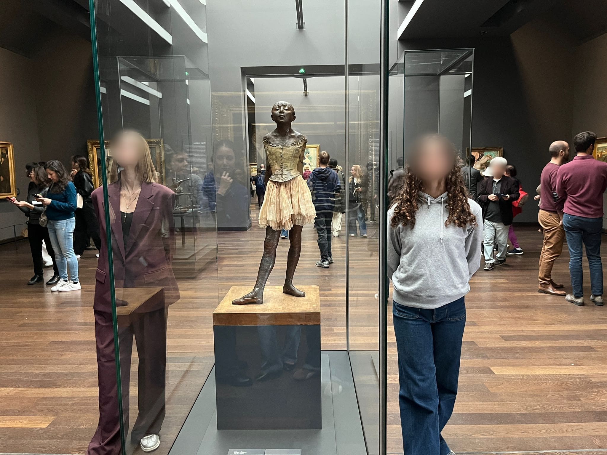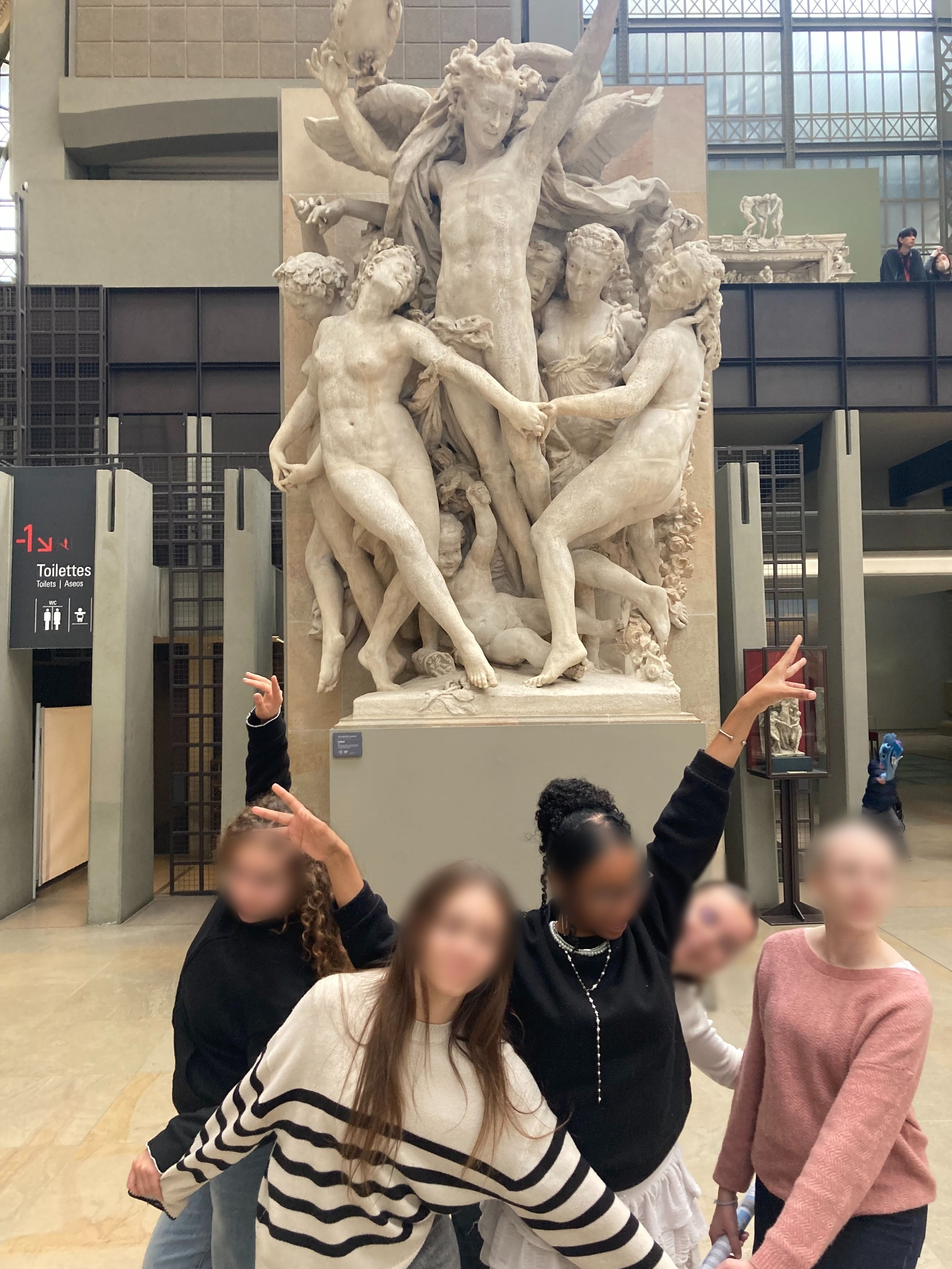 La visite a débuté par la découverte des œuvres du Musée d’Orsay, cette ancienne gare devenue écrin où respire l’esthétique du XIXème siècle. Les élèves ont pu comparer l’évolution de la représentation des corps, entre ceux idéalisés de « La naissance de Vénus » de Bouguereau (peintre académique aimé de Napoléon III) aux corps plus animés de « La danse » de Carpeaux, ou plus réalistes de « La Petite Danseuse » de Degas. Les élèves ont aussi lu dans les peintures et sculptures, la chorégraphie des corps, du bal bourgeois aux guinguettes, la danse devenant alors un lieu de mélange social.