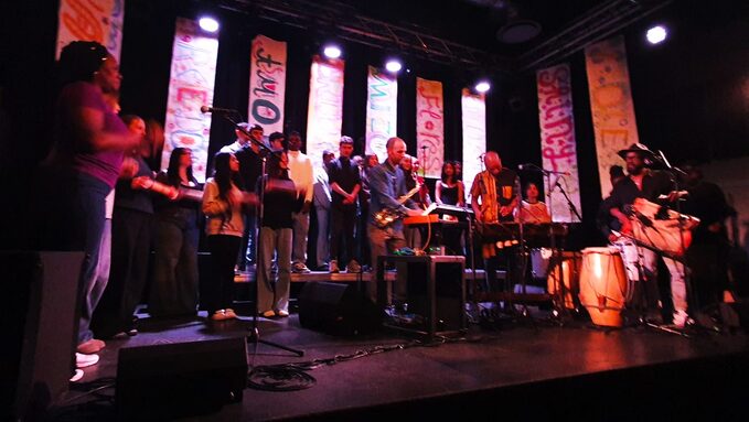 Lundi 30 mars2026, à 18heures, a eu lieu dans la grande salle du Périscope la restitution des ateliers de musique et de création graphique du projet « Musique sans frontière », projet qui a l’ambition d'utiliser l’art et la musique comme langage universel et outil d’inclusion.